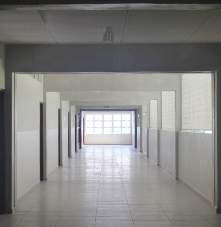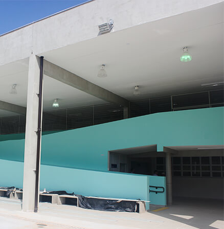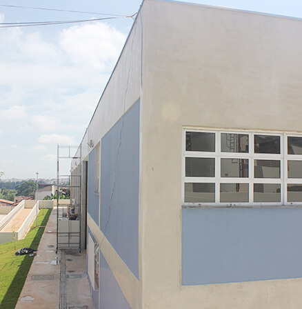 Construção de prédio na forma convencional com estrutura de concreto armado "in loco", laje em painel protendido, vedação em alvenaria, esquadrias em alumínio, acabamentos adequados a cada ambiente, instalações elétricas, hidráulicas e logica.