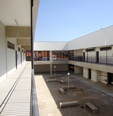 Construção de prédio na forma convencional com estrutura de concreto armado "in loco", laje em painel protendido, vedação em alvenaria, esquadrias em alumínio, acabamentos adequados a cada ambiente, instalações elétricas, hidráulicas e logica